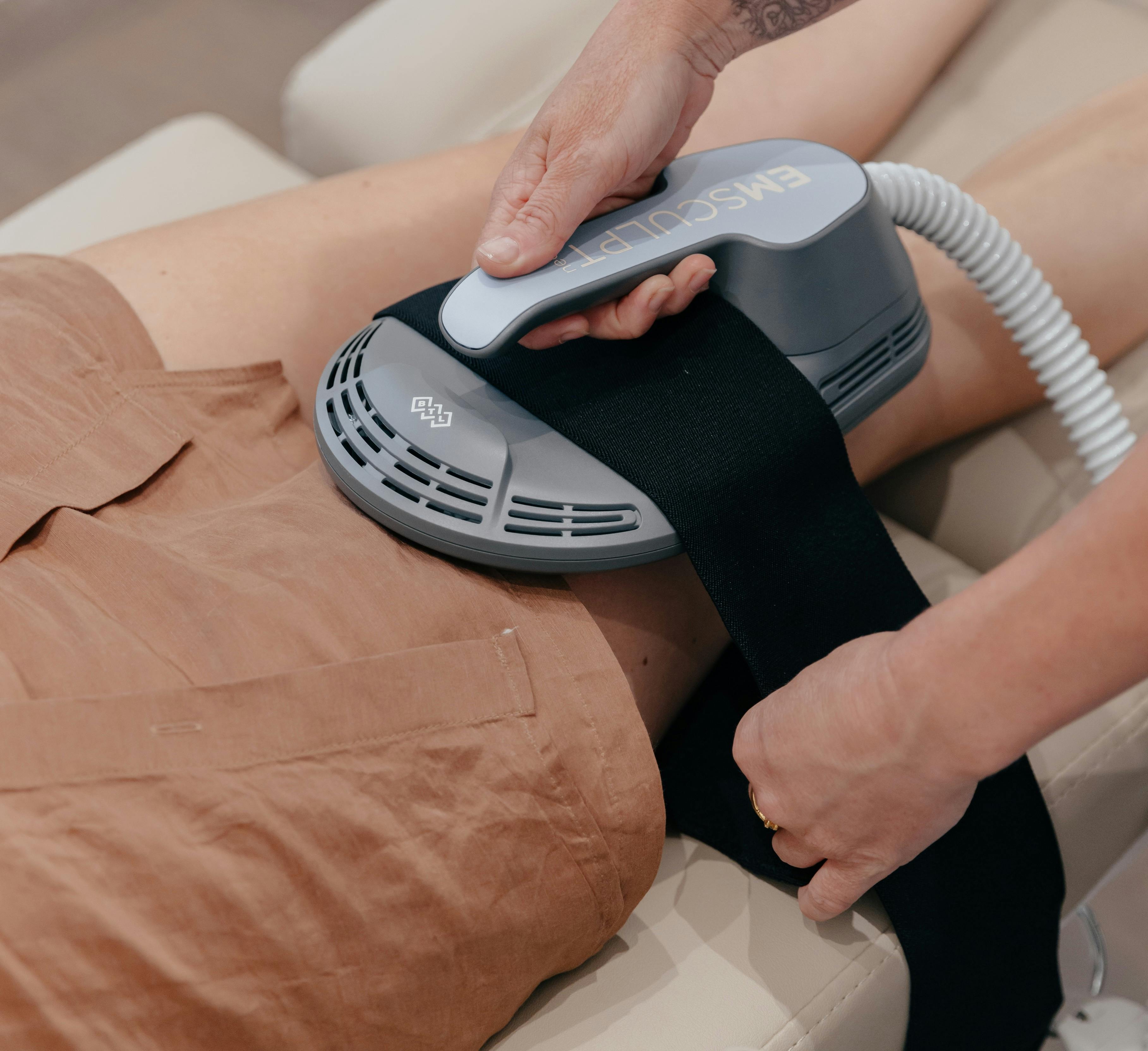 The EMSCULPT Neo is an advancement from the EMSCULPT, with the inclusion of Synchronised Radio Frequency and far more intense muscle contractions. For treatment, EMSCULPT Neo applicators with synchronised RF electrodes are placed on the body where they emit RF heating and high intensity magnetic fields simultaneously.